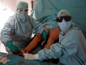 Tir laser à 15watts Watts tous les 3mm en descendant jusqu’au genou et poursuite du tir à 5 watts jusqu’à la mi-jambe. Entraînant la rétraction et la destruction de la paroi veineuse sans aucun dommage aux tissus environnants. La veine peut être traitée sur toute sa longueur. Après traitement, un contrôle echodoppler confirme la réfraction et l’occlusion de la veine.